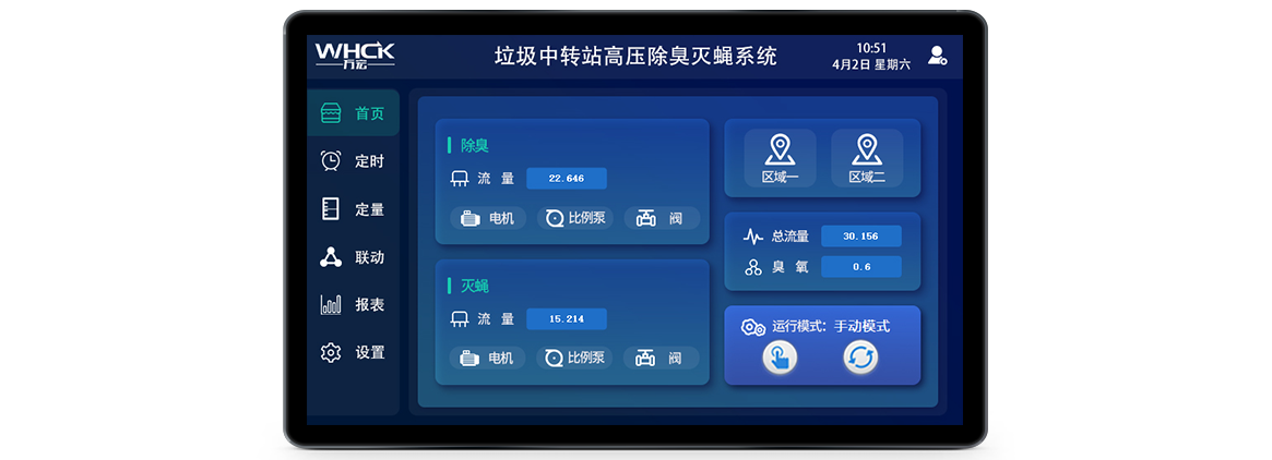 1.实时数据采集上报:除臭流量、灭蝇流量、总流量、臭氧